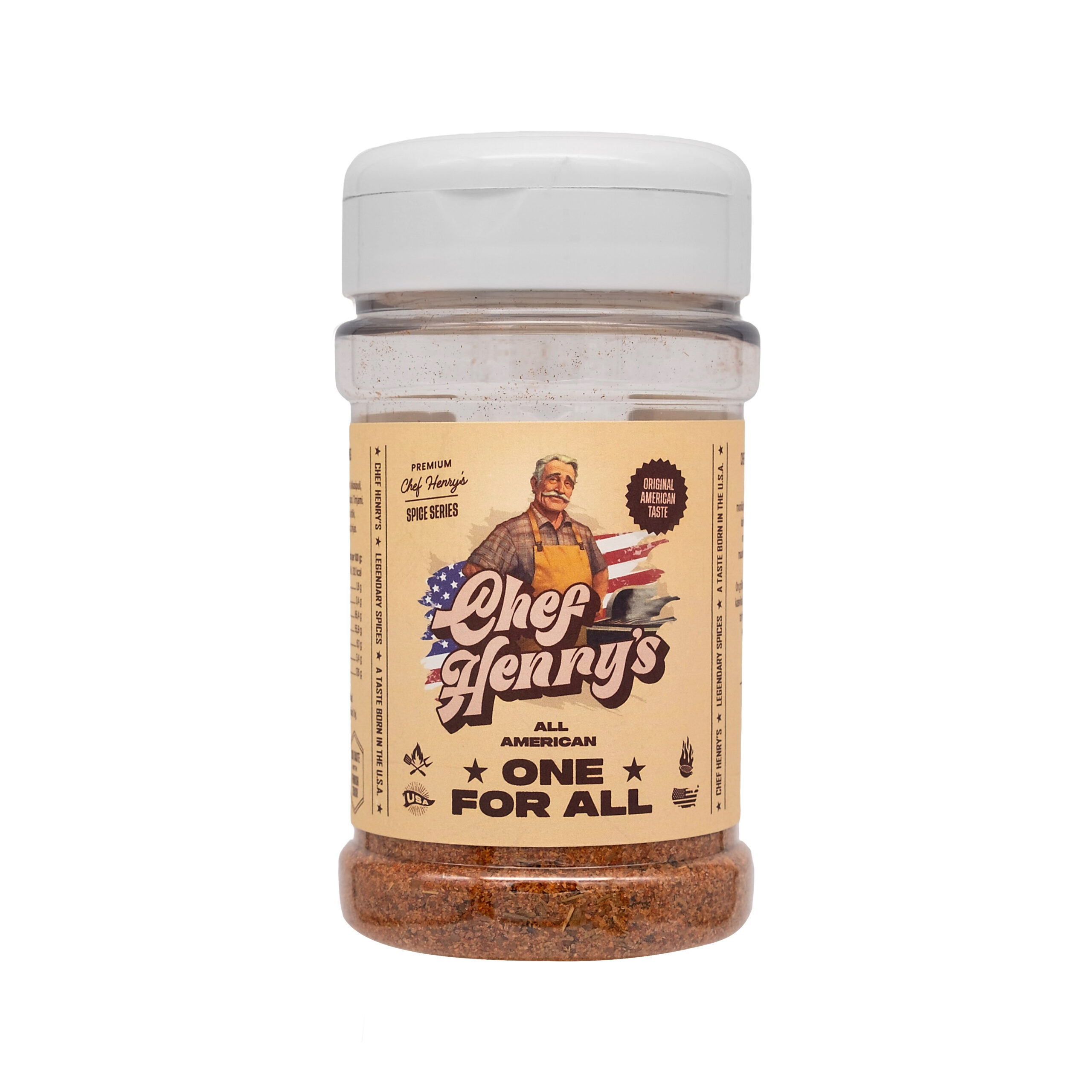 Ingredienser: Rörsocker, socker, salt, paprika, vitlök, ingefära, svartpeppar, lökpulver, cayennepeppar, timjan.